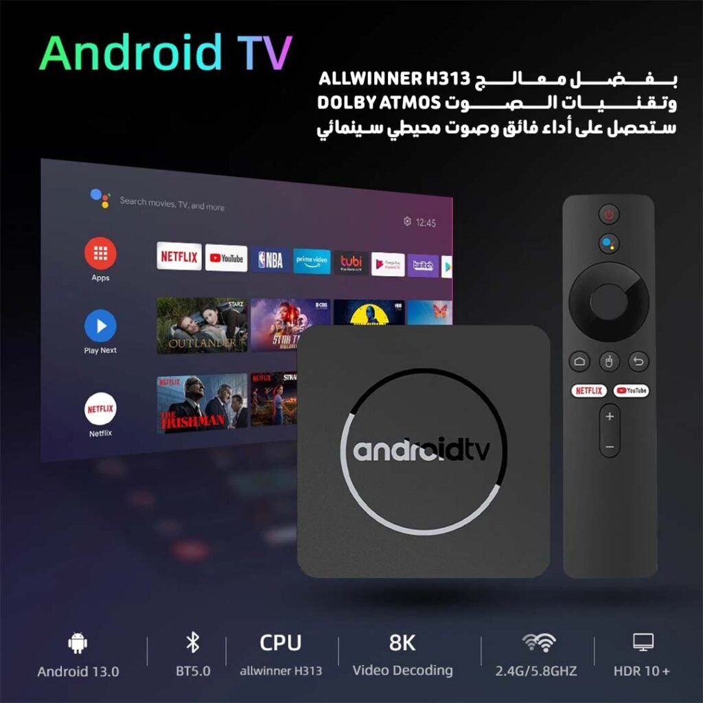 يدعم تطبيقات Netflix, YouTube, Prime Video, Google Play وغيرها
